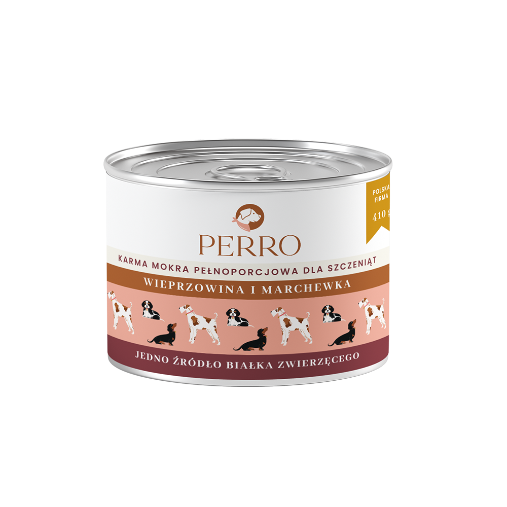 Karma mokra PERRO Wieprzowina i marchewka to bezzbożowa, monobiałkowa formuła dla szczeniąt wszystkich ras.
