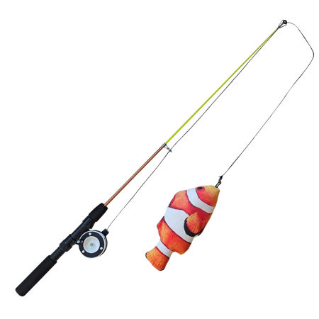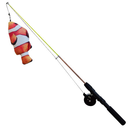 Wędka jest rozsuwana i wyposażona w kołowrotek z wyłącznikiem oraz miękką rączkę, co sprawia, że zabawa jest jeszcze bardziej realistyczna. Pluszowa rybka o długości 19 cm jest wypełniona kocimiętką, aby przyciągnąć uwagę kota. Rozłożona wędka ma 71 cm długości, a sznurek ma długość ok. 130 cm. Ta zabawka w zabawny sposób pobudza koci instynkt łowiecki i pobudza ruchy kota.
